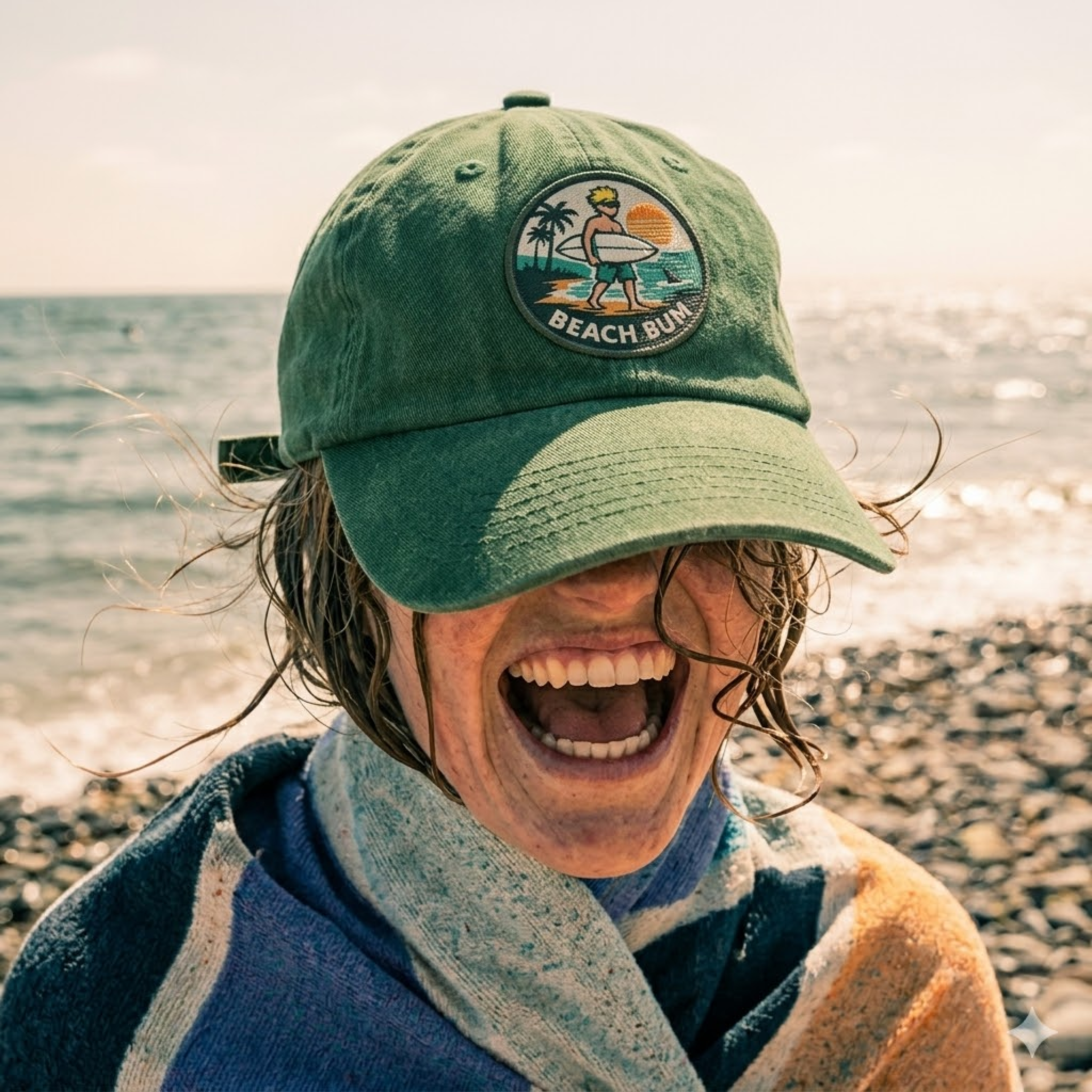 Threw on the green Beach Bum hat after a quick swim and instantly felt like the weekend.